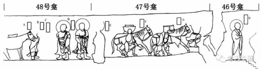 ▲ 图四 杭州飞来峰取经故事线描图据《汉藏瑰宝杭州飞来峰造像研究》改绘