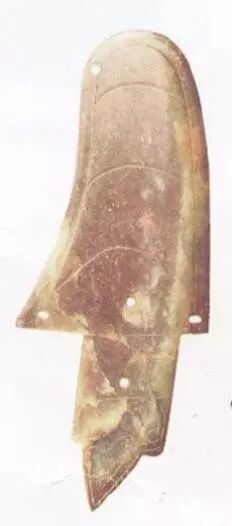玉圭,陕西西周墓葬出土的玉圭形体均较小,形制亦欠规整。大型玉戈具有玉圭之功能,如岐山县城南刘家塬出土的太保玉戈,长66.5,宽9.2厘米,其上阴刻27个细若蛛丝的铭文,记载周王命太保巡视南国的史实。这件玉戈无疑是太保燕召公奭显赫权力地位的象征。长安张家坡M170井叔墓出土的龙纹大玉戈、张家坡26号墓出土的素面大型玉戈,无疑也是礼器(图16、图17)。
