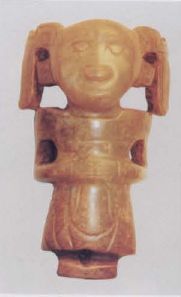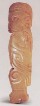 单纯的人物形象,有正面站立的玉人佩、蹲踞状的玉人佩,三角形的玉人佩(图38~40)。