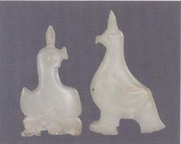 图54 花冠玉鸟,左高3.5、右高4.0厘米,扶风齐家19号墓出土