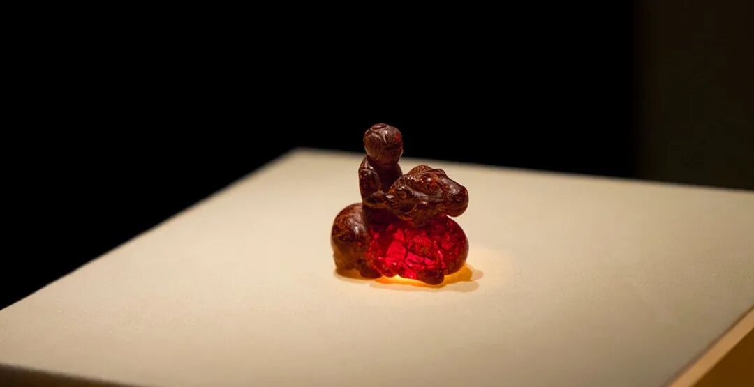 如此成色的血珀别说在汉代,就是在今天都是“壕无人性”。刘充国小朋友小时候的玩具可谓是尽享荣华富贵了,只可惜十几岁就早夭了,看这墓葬规格也知道刘贺有多么伤心。明代宋应星《天工开物》记载:“琥珀最贵者瑿(音依,此值黄金五倍价),红而微带黑。然昼见则黑,灯光下则红甚也”。这两件琥珀饰均以血珀雕成,质工俱佳,十分珍贵。血珀骑羊俑,三国魏(220-265年),河南省洛阳市伊滨区西朱村出土,洛阳市文物考古研究院藏。宝石,是矿物,也是有情之物。若没有人性的加持,宝石永远只属于没有生命之物,它们的万般灵动,都是因为有了感情的加持,才有了大自然万亿年都无法造化的人情味。