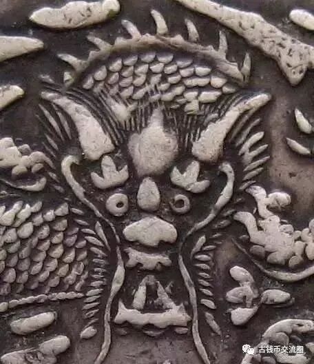 3、 长点绪暴牙龙多云版:长点绪在川龙中数量较少,长点绪多云版龅牙龙和长点绪兔龙又是少中之少。此版最大的特征是龙头正上方多了一朵云,这是其他川龙所没有的,再加上长点绪,折头金,折头库,正面内齿普遍弱打。这个版别成为新的川龙五星级大名誉版需要的只是时间。这枚品相一般,配个品种不错。