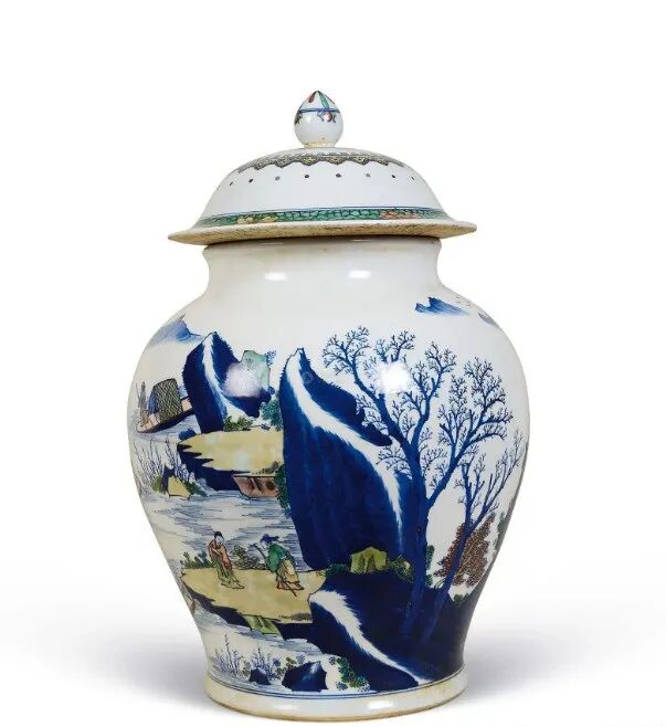 康熙年间古彩瓷发展至艺术造诣上的鼎盛时期,称为清康熙五彩。清康熙五彩的艺术表现力首先体现在釉面绘画题材表现上十分丰富;其次,清康熙时期陶瓷的器型品种繁多。在釉面绘画的表现手法上, 康熙五彩釉面绘画受到儒学思想、文人画派、徽州版画及明锦的影响,构图舒展、意境深远、别具一格,烙印上了当时绘画与书法的符号。