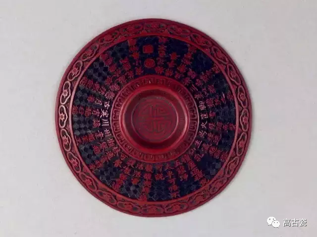 乾隆款红漆描黑《三清茶》诗盖碗