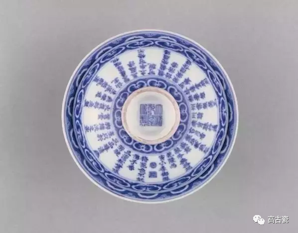 乾隆御题《三清茶》诗青花盖碗
