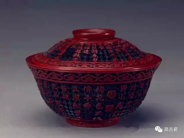 剔红《三清茶》诗盖碗