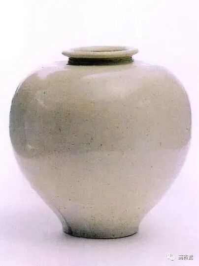 敛口,罐圆口,折肩,鼓腹,饼形足。周身施白釉,釉层薄而均匀。瓷胎呈乳白色。