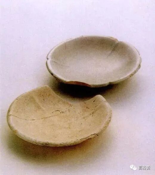 二器均为圆唇,沿稍卷,花瓣形口,弧壁,浅腹,圜底近平,矮圈足。胎呈白色稍泛灰黄。内壁出棱。内外壁施白釉,薄而均匀。