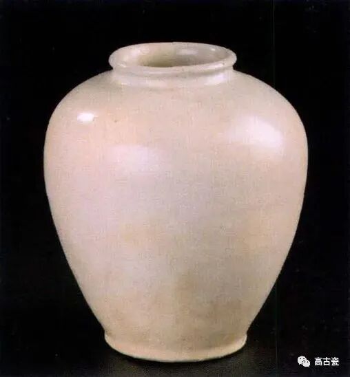 圆唇,厚沿,束颈,圆肩,弧腹,平底,底下部斜削一周。瓷胎呈米 黄色。