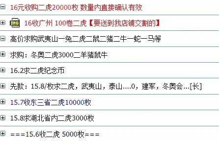前几天,已经冲高到17.5元一枚的虎币,受发行计划影响,出现了局部回调的情况,当时虎币的市场求购价回落到了15.6~16.2元左右。