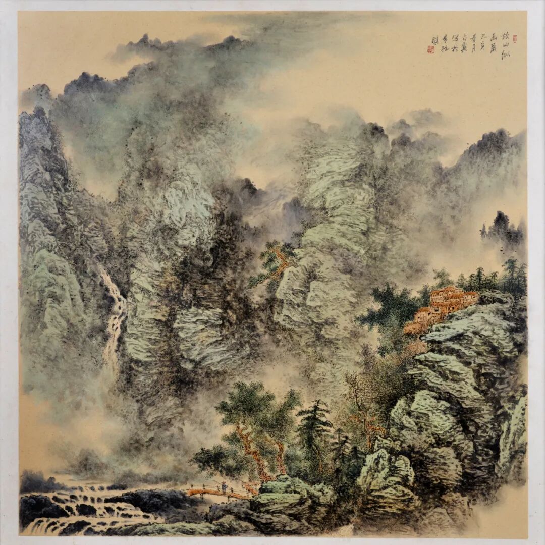 占翼《色釉墨彩山水瓷板画唐人诗意图》