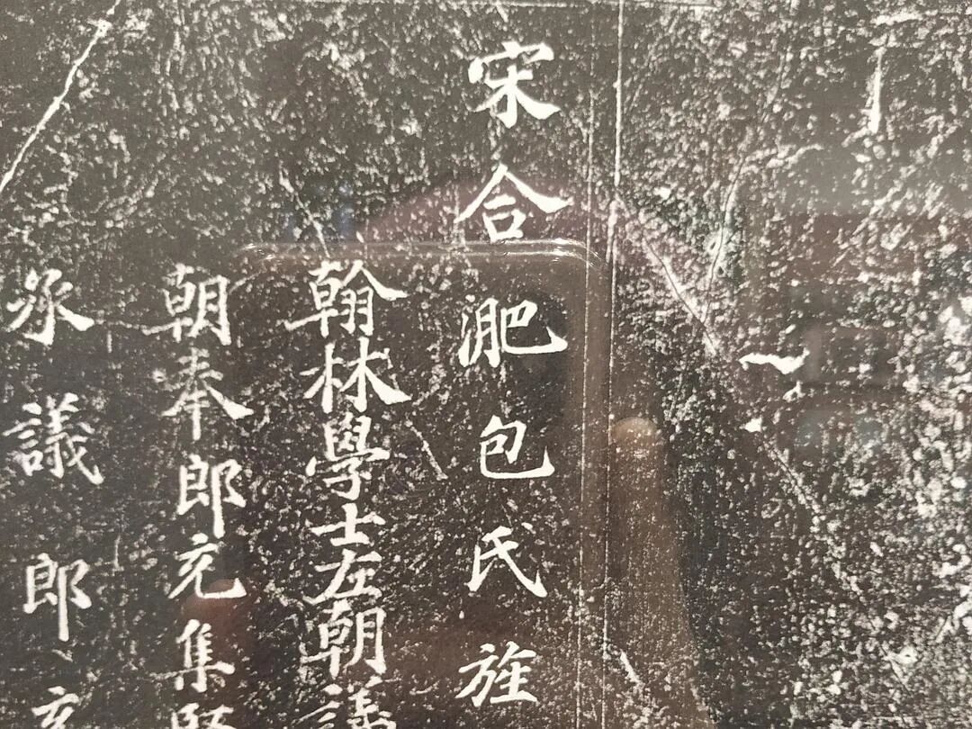包拯墓志铭,石质,一合两块。志盖长 123 cm,宽122 cm,厚13 cm。盖顶斜坡,中部平整,阴刻4 行篆书:“宋枢密副使赠礼部尚书孝肃包公墓铭”16 字;志石近正方形,长126 cm,宽125 cm,厚14 cm,刻文51 行,每行59 至63 字不等,志文楷书,全文约3200字,较《宋史·包拯传》为详。墓志除叙述包拯生平事迹外,还记录了他的世系、病丧、葬址及其子嗣的有关情况,为研究北宋名臣包拯及其家族提供了珍贵的实物资料。