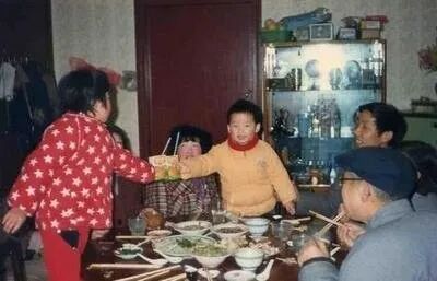年夜饭是除夕夜的重头戏,一年中最重要的一顿饭,绝对不可马虎。进入腊月后购买的年货终于派上了用场。家里的大人们从前一天晚上就开始准备,几乎是把家里所有好吃的都做出来。鸡、鱼、肉是少不了的,炸丸子、炸春卷、红烧肉等等,至少要凑十个菜,双数为吉祥。其中一定要有一道鱼做的菜,取年年有余之意。团圆饭的饭,北方人一定是吃饺子,南方人吃汤圆。80年代初,物资供应不充足,实行配给制,肉、鱼、油等是凭票供应的,普通人家平时舍不得吃,都留着过年用。平常人家也只有过年的时候,才能吃上几顿饺子。那时的饺子馅,非常简单,无非是一猪肉或油渣,拌上大白菜、萝卜或或韭菜什么的,如果能够加点平时少见的虾仁,更是难得的美味,但是那时的饺子在人们心里的味道却格外地香。在一大锅饺子里面,通常有几个饺子里面各包上一枚硬币,后来出于卫生方面的考虑,以糖果代替,谁能吃到这个饺子,就预示着来年谁的福多,这样的饺子被称为福饺。往往家里有几个孩子就包几个福饺,神奇的是,母亲每年都能让每个孩子吃到一个这样的饺子,这就是父母对儿女的朴素祝福吧。![]()