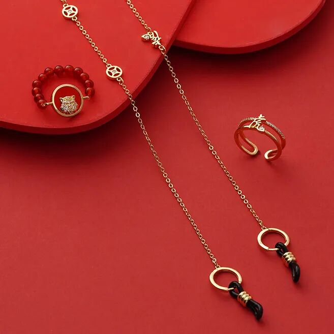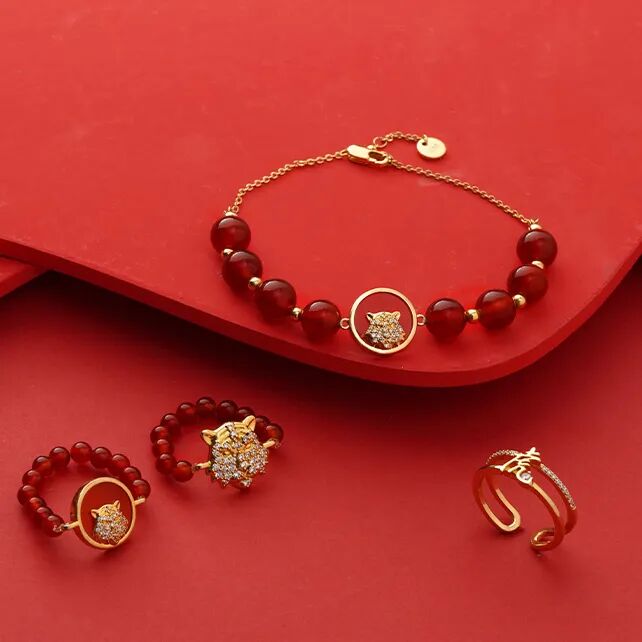 精选红玛瑙制成,阳光下呈半透明状,佩戴在皮肤上呈现暗红色。铜镀真金0.07厚度比市场上的饰品镀金厚度高出两到三倍,加固保色期。凹凸立体的纹样细腻,佩戴舒适且时尚,低调奢华有内涵。