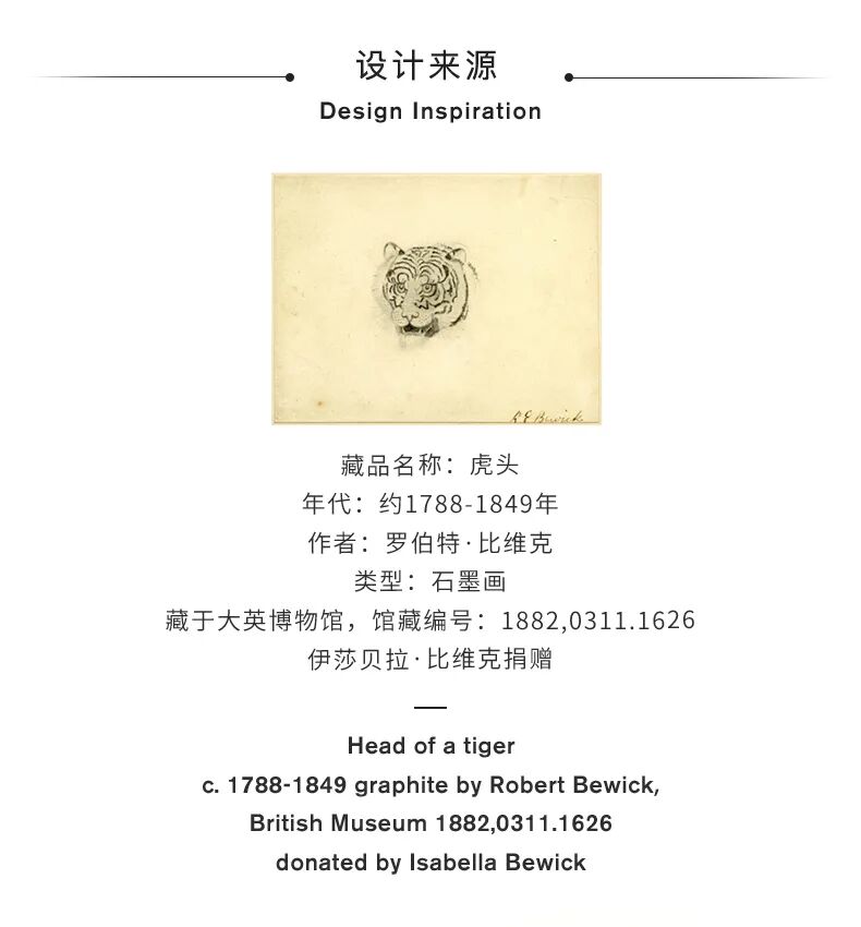 壬寅虎年,大英博物馆特推出老虎系列饰品,灵感来源于馆藏文物虎头石墨画。老虎作为百兽之王,是祥瑞的标志。寓意新的一年平安吉祥,威武勇健!