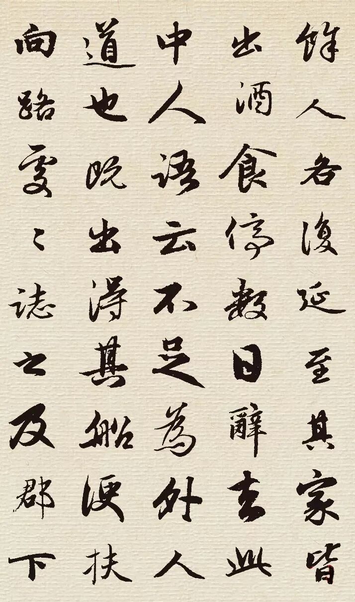余人各复延至其家,皆出酒食。停数日,辞去。此中人语云:“不足为外人道也。”既出,得其船,便扶向路,处处志之。及郡下,