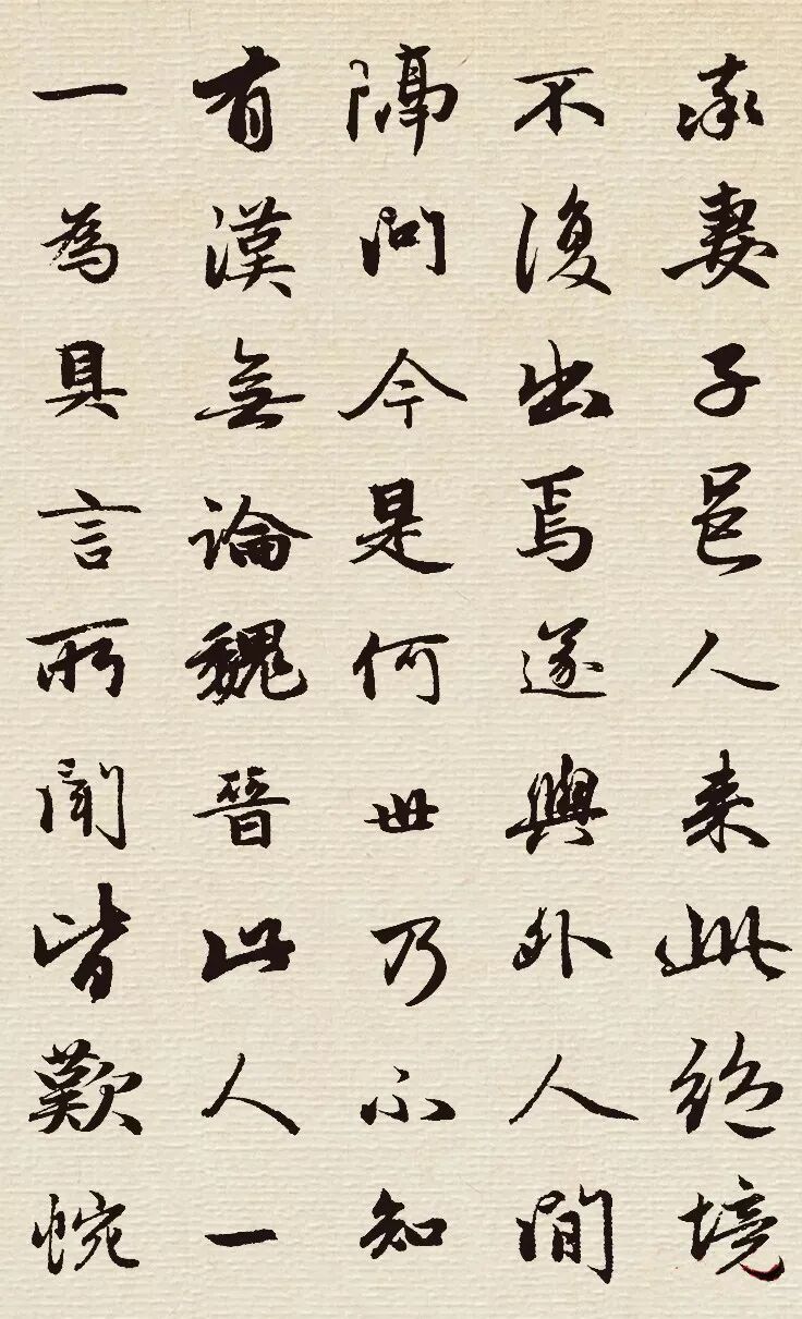 率妻子邑人来此绝境,不复出焉,遂与外人间隔。问今是何世,乃不知有汉,无论魏晋。此人一一为具言所闻,皆叹惋。