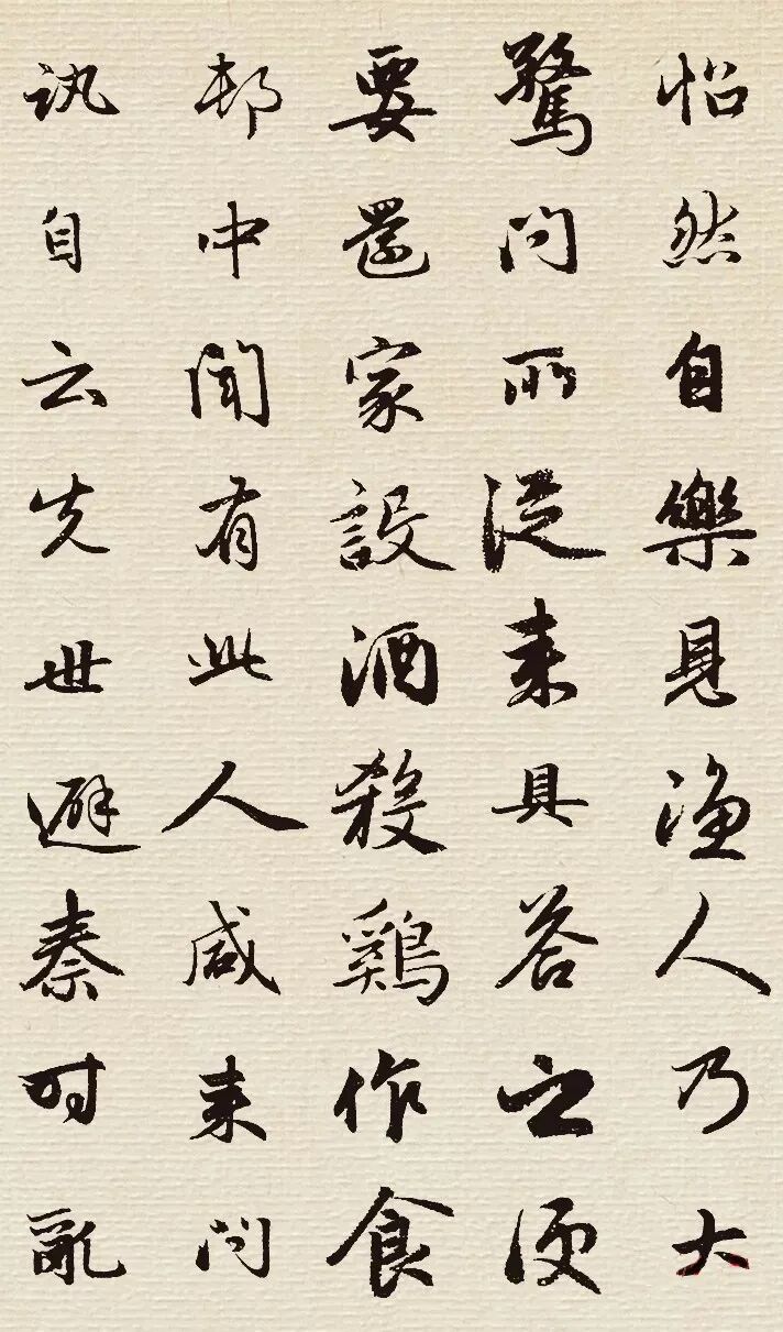 怡然自乐。见渔人,乃大惊,问所从来。具答之。便要还家,设酒杀鸡作食。村中闻有此人,咸来问讯。自云先世避秦时乱,