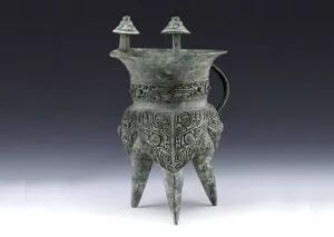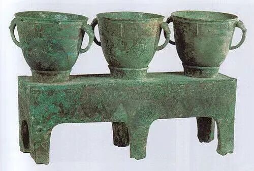 斝外形似鬲而腹与足分离明显。陶斝产生于新石器时代晚期时,足部中空可盛物,是炊具。到了商周时便变为三条实足,且多由青铜制成,由炊具演变成酒具。当时,青铜斝也被用作礼器,呈三足、一鋬、两柱、圆口呈喇叭形。我国是较早制造和使用炊具的国家,历史源远流长,在我国目前的出土文物中发现了各个时期不同种类的炊具,其种类之全、形态之多、用料之广为世界之盛。随着人类社会的不断发展,在不同的历史时期炊具的变化不免烙下了时代的印记,因而炊具在一定程度上代表了特定时期人们的生活方式和审美理念,也正是人类的进步促使炊具不断的变化发展。中国传统饮食器具与人民生活密切相关,在生活和生产中给古代人民带来极大便利,并且在几千年的中国文明史中占有重要地位。“以古为鉴,可知兴替。”所以,探古才能更好地传承、知古才能更好地创新、明古才能更好地发展。古人的智慧令我们赞叹和折服,在这个崭新的时代,我们应当对我国古代的饮食文化深入的探索与研究,更应以积极的态度,包容的气度传承和弘扬传统文化,不断增强民族自信心与民族凝聚力。