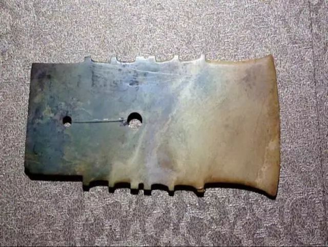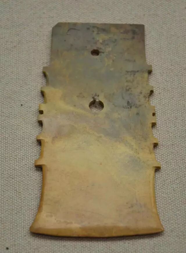 上图为山西翼城大河口西周霸国墓地出土的玉戚。