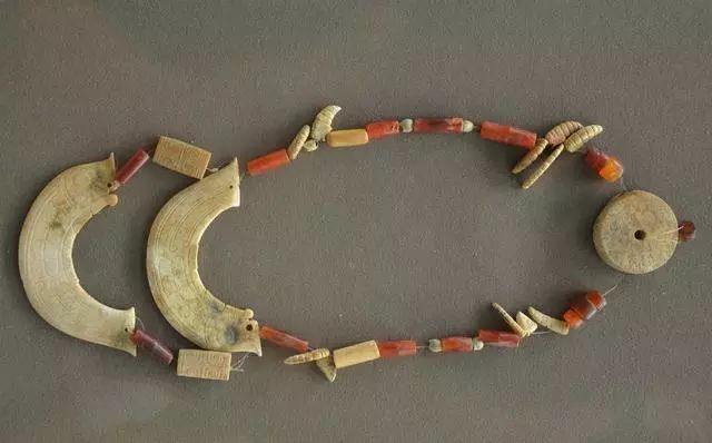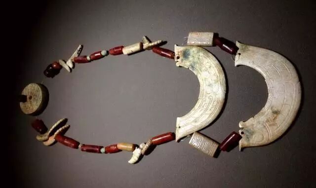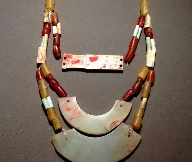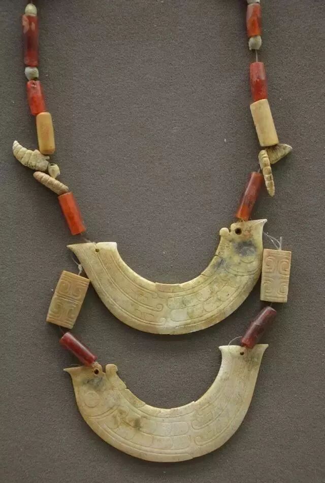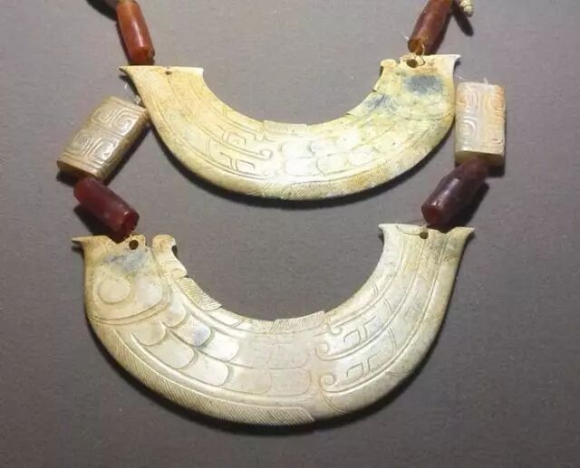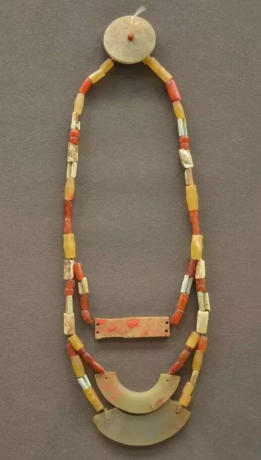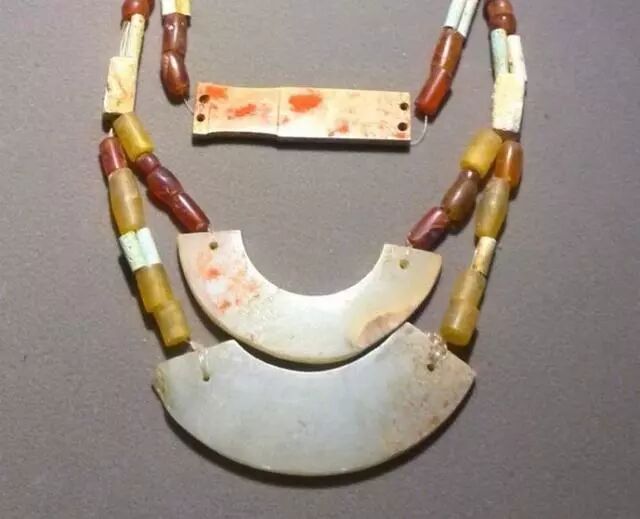 上图为山西翼城大河口西周霸国墓地出土的玉项饰。