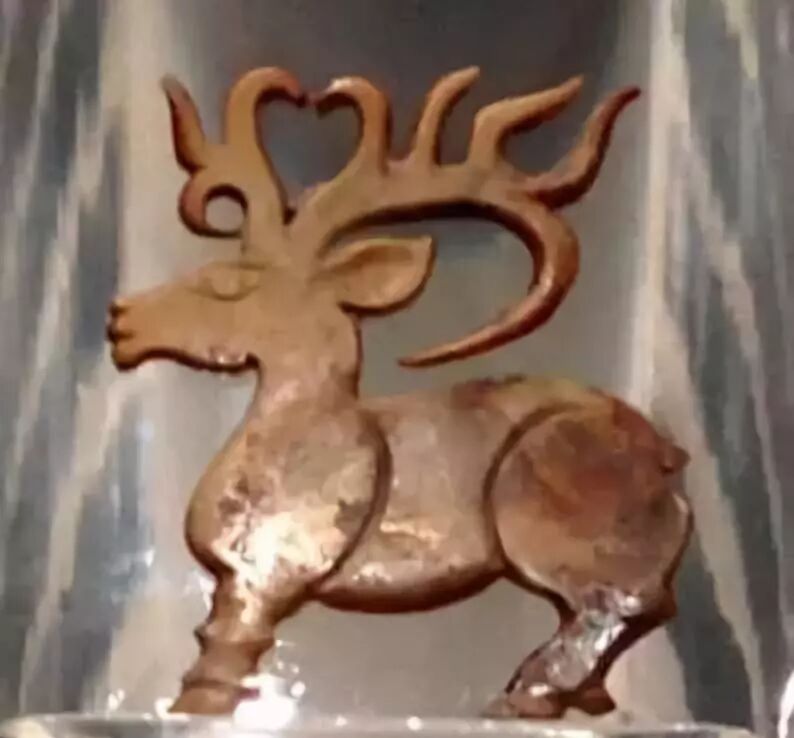 上图为山西翼城大河口西周霸国墓地出土的两只玉鹿。