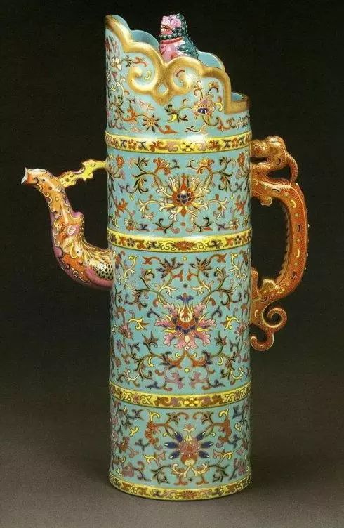 清乾隆 松石绿地粉彩花卉龙把多穆壶 80.49万美元