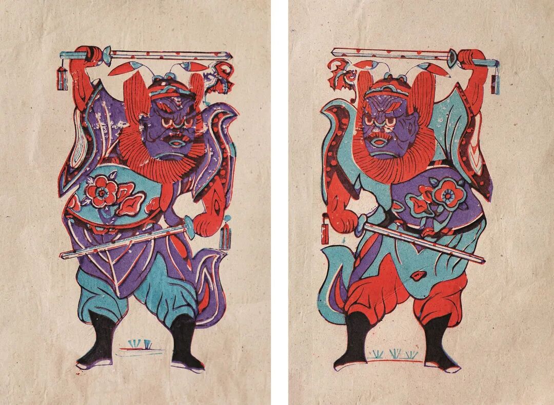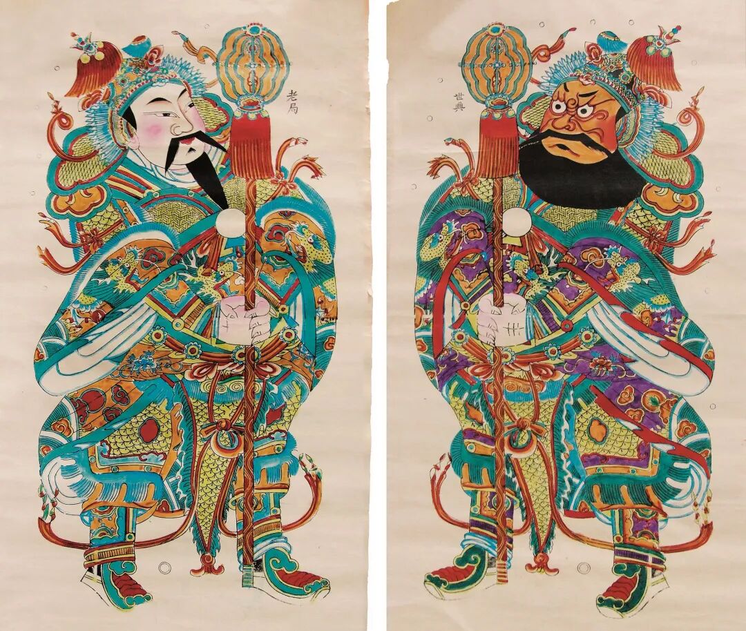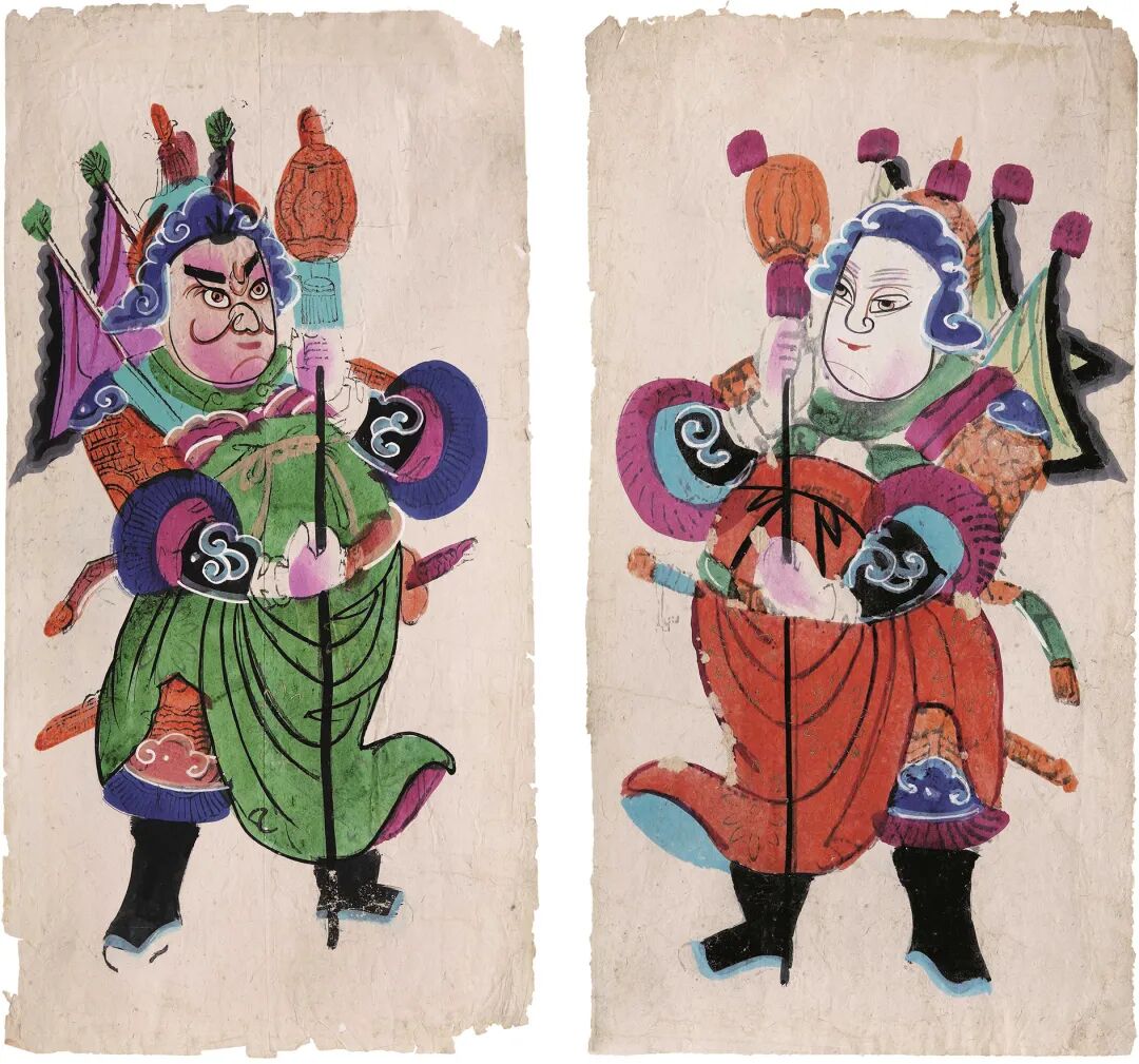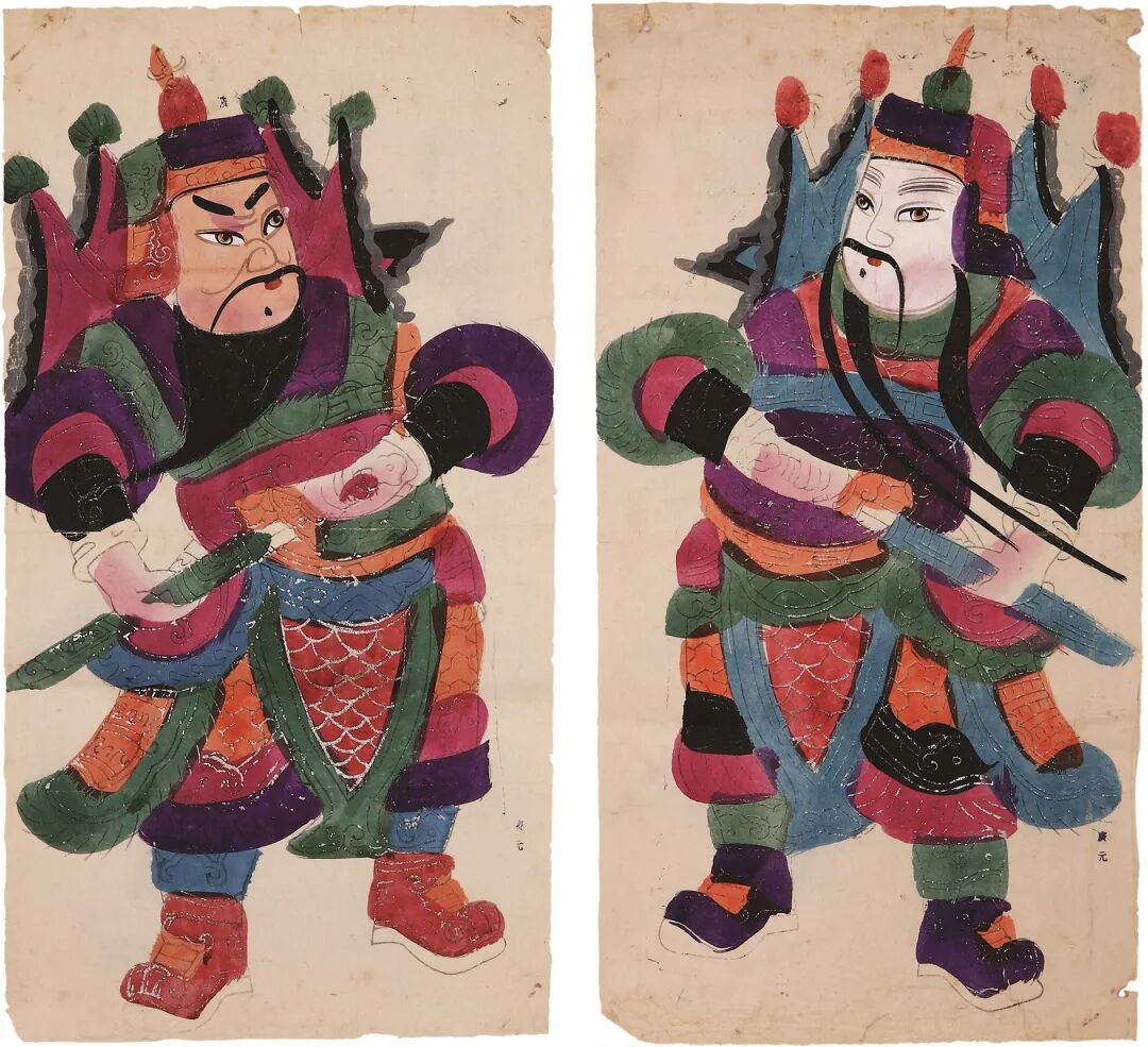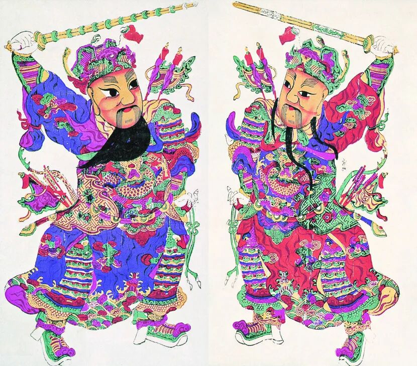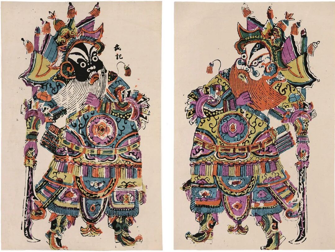 也有些门神的武将未能标出名字,只是手持兵刃的武士,寄托着门户平安的执念——