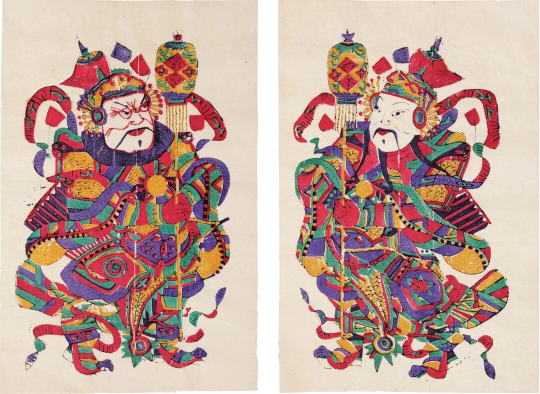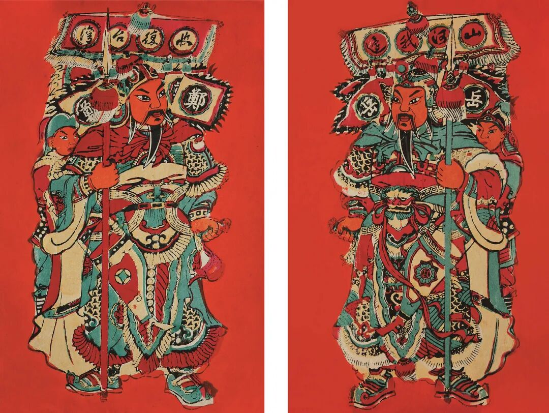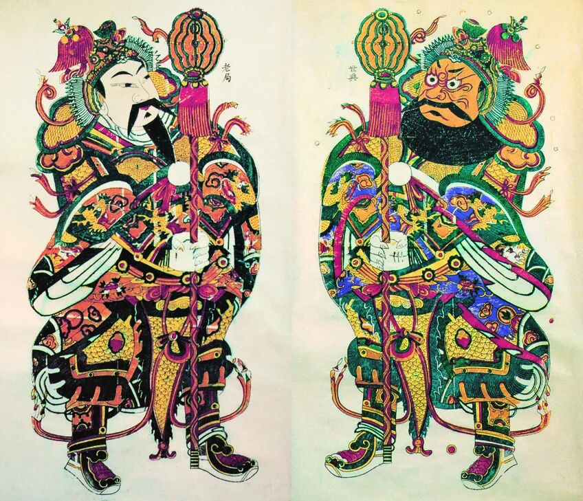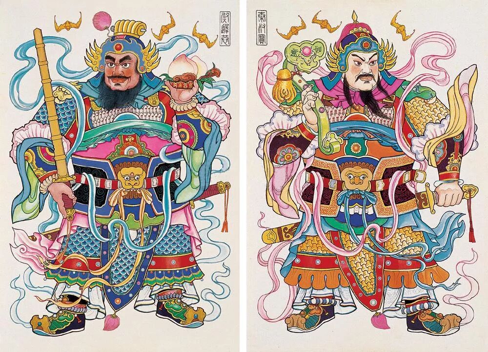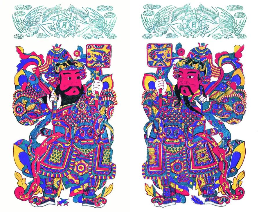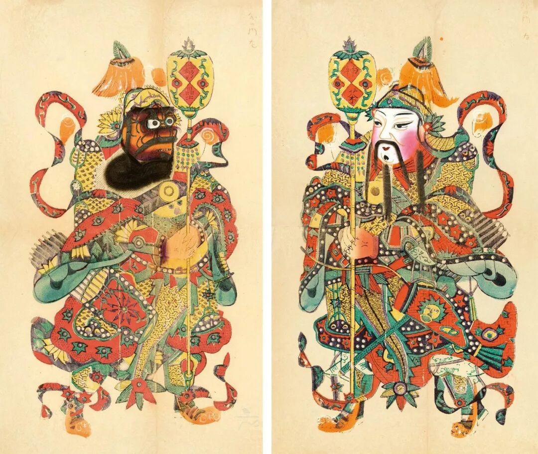 也有些门神的武将未能标出名字,只是手持兵刃的武士,寄托着门户平安的执念——