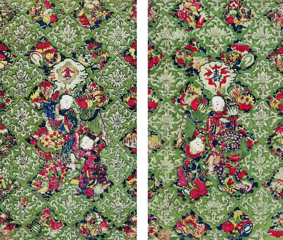 桃献千年寿 榴开百子图 32cm×24cm×2 北京