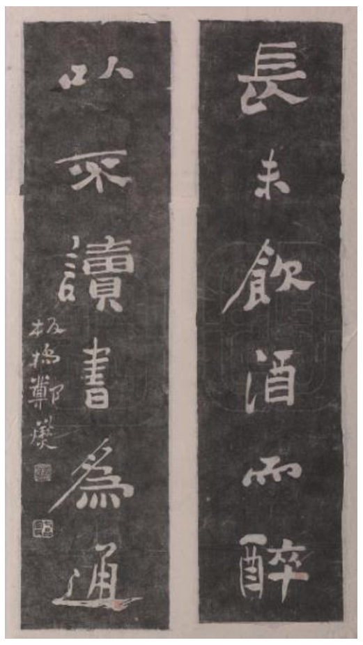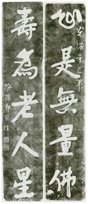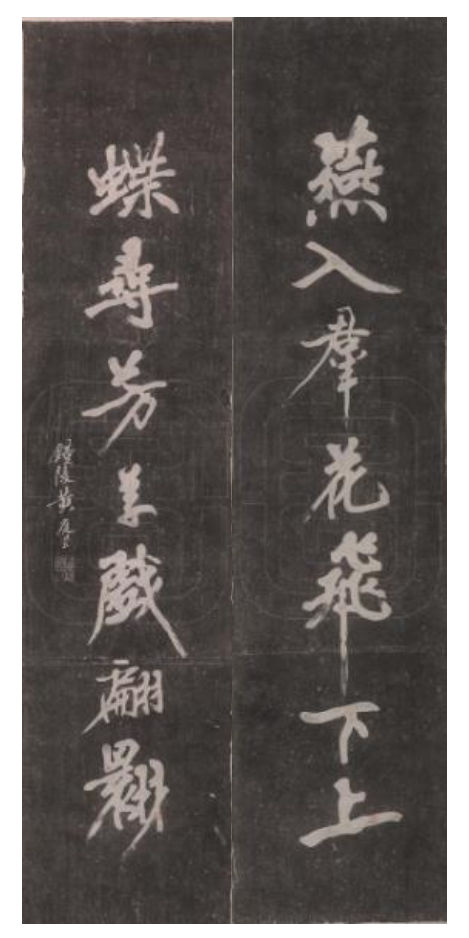馆藏石刻拓片文献类型多样,其中楹联石刻拓片为其中重要一类,内中不乏名书家如黄庭坚、董其昌、郑板桥等书写作品,真、草、篆、隶、行诸体皆备,颇具书法价值。临近春节,今从馆藏楹联拓片中择取名家书、撰22品,略依刊刻时间为序,简述拓片相关内容,附以书影,以飨读者。