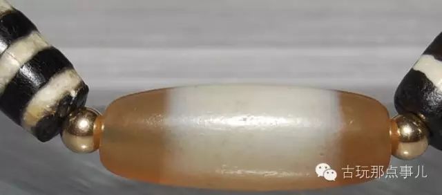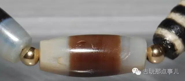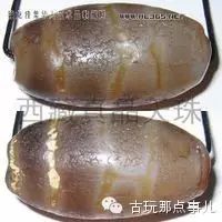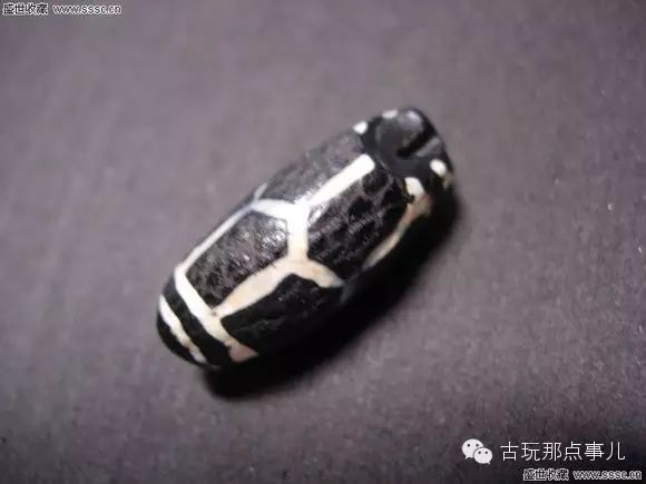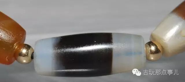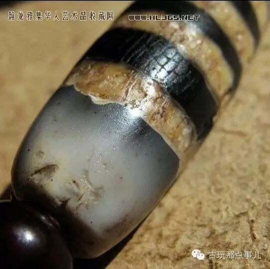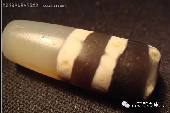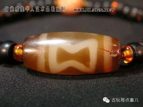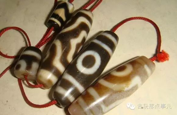 镶蚀红玉髓:西亚镶蚀红玉髓是当前被公认年份最早的镶蚀玉髓珠,最早在距今5000年前的美索不达米亚平原,阿富汗,巴基斯坦和印度北部的拉答克高原就有出产。这种珠子种类图案繁多,形制不一,工艺简单,年代跨度大,覆盖区域广,历史文化价值极高。有人认为这种珠子在工艺方面和天珠有渊源,或许是天珠的前身。由于此类珠子地位特殊,小弟不把它当做天珠看待,而将它独自归为一类,如上图所示。由于个人能力所限,也无法多做介绍,请有兴趣的同好广参资料,多做研究吧。