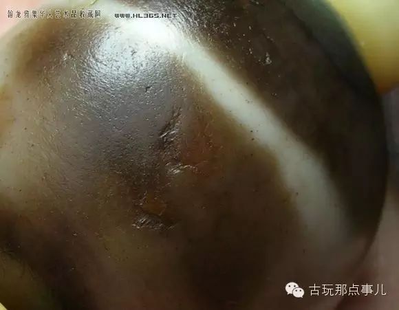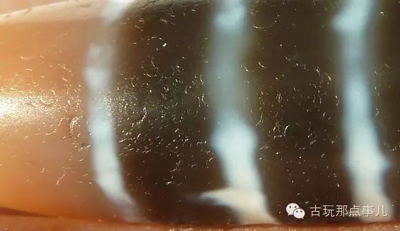 至纯天珠的工艺特征(在真品天珠的前提下):珠体通体白化,材质纯净,不透光;镶蚀线清晰,呈白色或者牙黄色,边界分明,无大规模渗色。