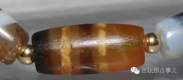 线珠(Striped beads),顾名思义是带有线条图案的旁系天珠,在这里暂时只讨论和天珠镶蚀工艺比较接近的线珠,区别于西亚镶蚀红玉髓线珠和古代滇文化线珠。