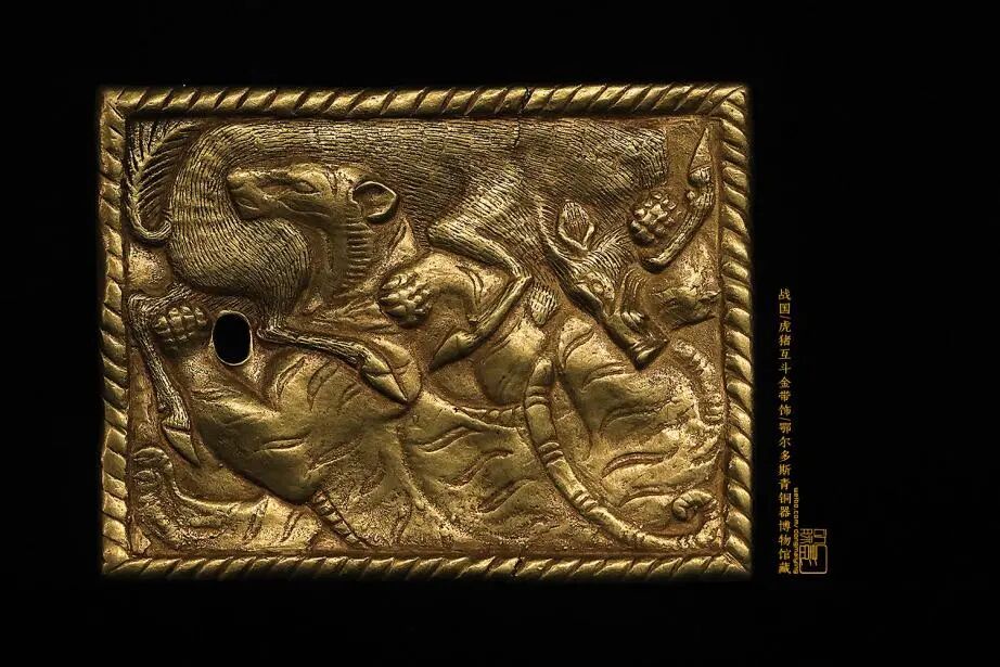 战国 虎猪互斗金带饰 鄂尔多斯青铜器博物馆藏