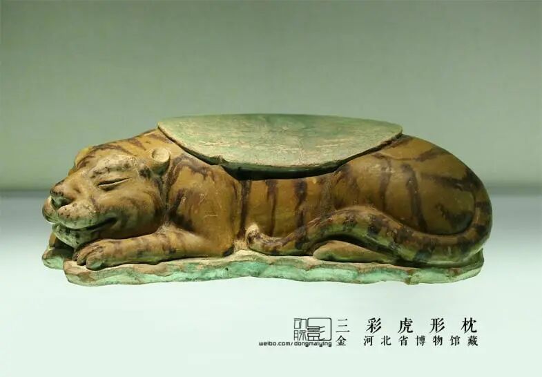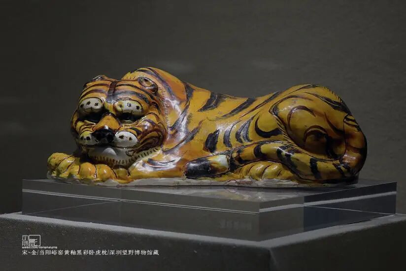 宋-金 当阳峪窑黄釉黑彩卧虎枕 望野博物馆藏 图源@动脉影