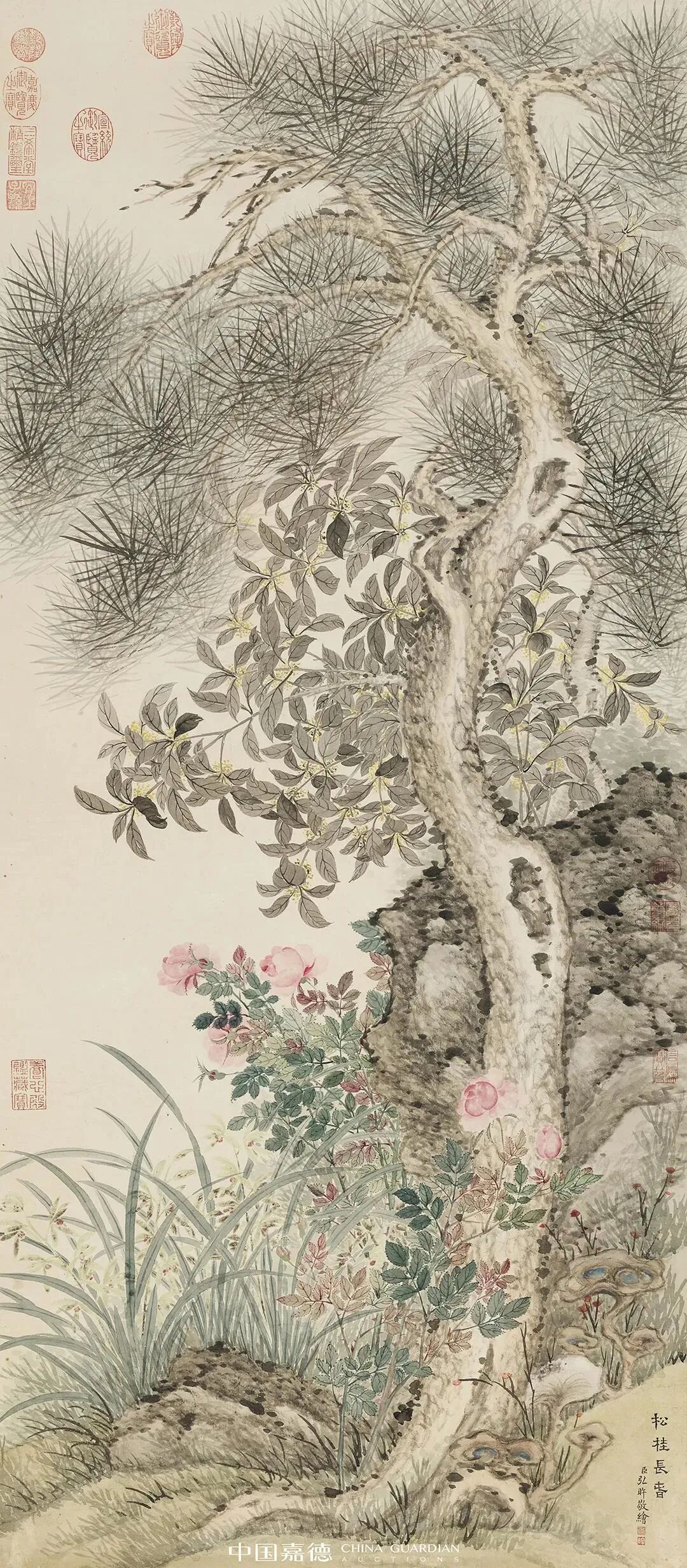 乾隆帝的生日在农历八月十三日,正是桂花盛开之际,由此可推测,《松桂长春图》应是弘旿在乾隆某年寿诞祝釐祈福、“上邀宸眷”的贺礼。
