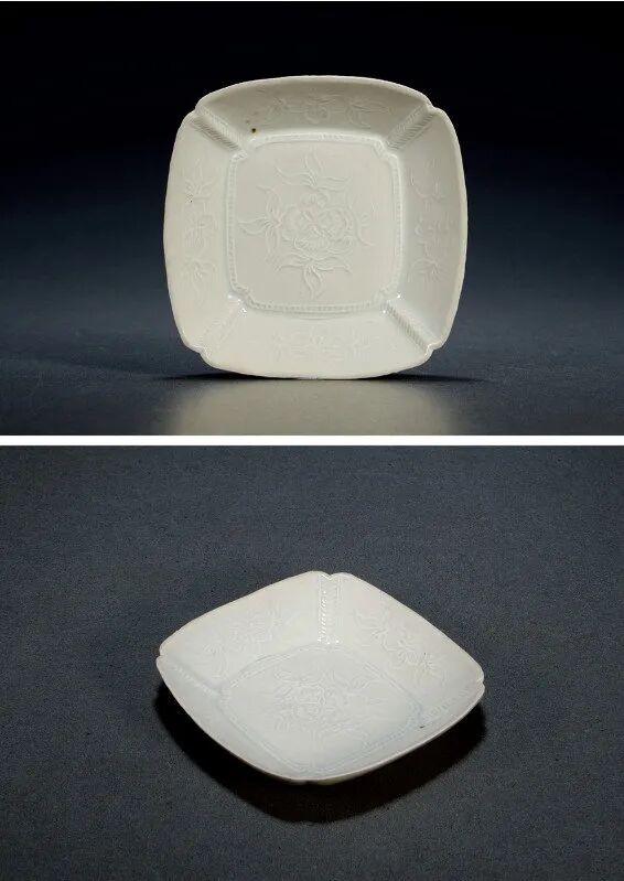 邢窑拍卖榜第2名 唐 盈字款邢窑沥粉堆花卉纹倭角方盘