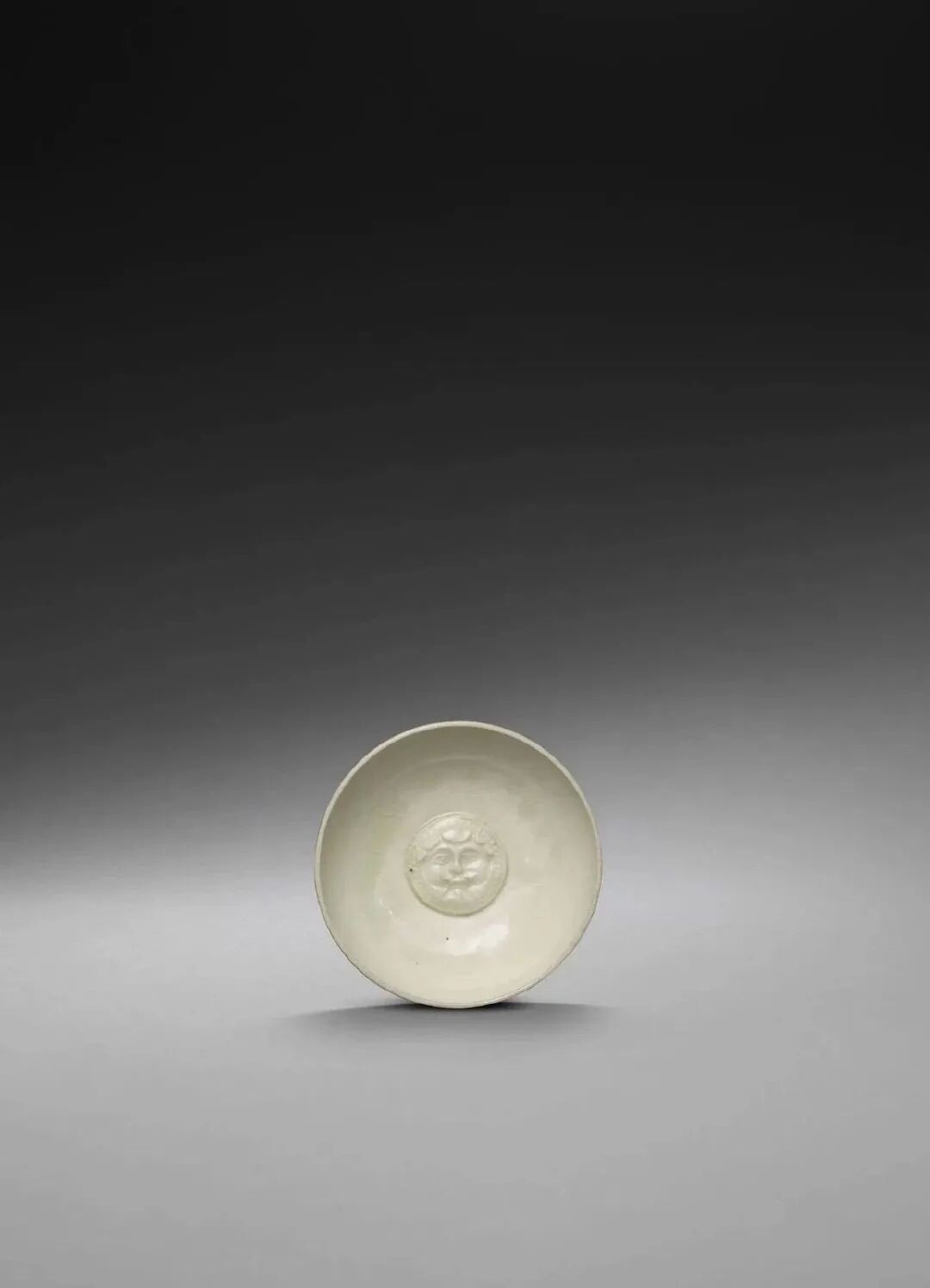 此盒纹饰华贵,发色分布精准,更为难得的是通体施釉,盒及盖内均有三个支钉痕,诚为造工精巧的上乘之作。 邢窑拍卖榜第10名 北朝/隋 邢窑白釉印胡人头像盌