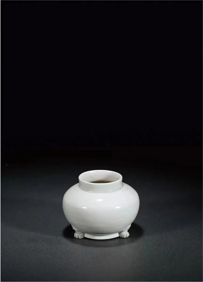 邢窑为唐代著名窑口,窑址位于今河北邢台市。邢窑在唐代极负盛名,“南青北白”中的北白指的就是邢窑白瓷。亦有“邢窑类雪定窑似冰”之美誉。邢窑解决了白瓷烧制釉色闪青的缺陷,所烧制的白瓷莹润如雪,是中国陶瓷史中的一大进步。 邢窑拍卖榜第23名 五代 邢窑白釉三足水盂