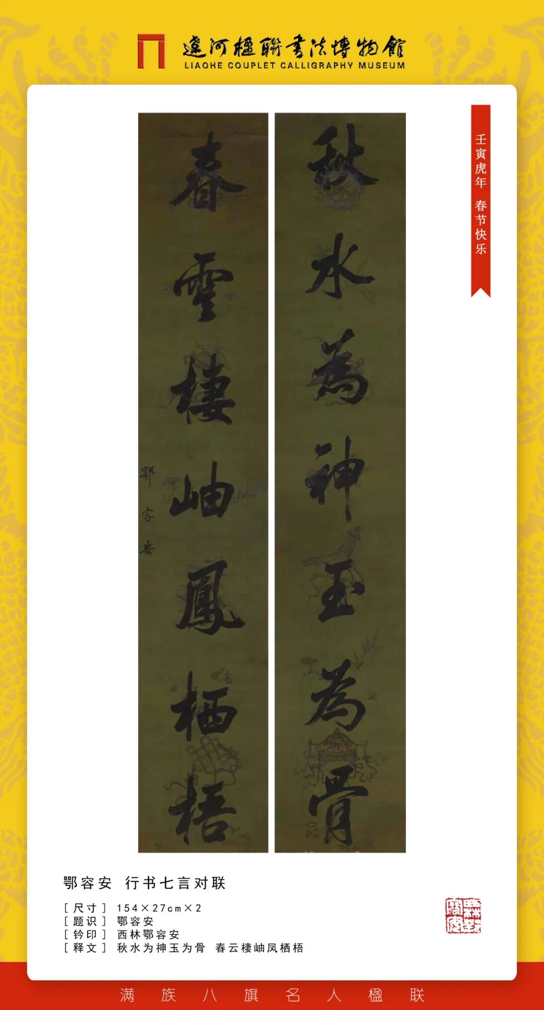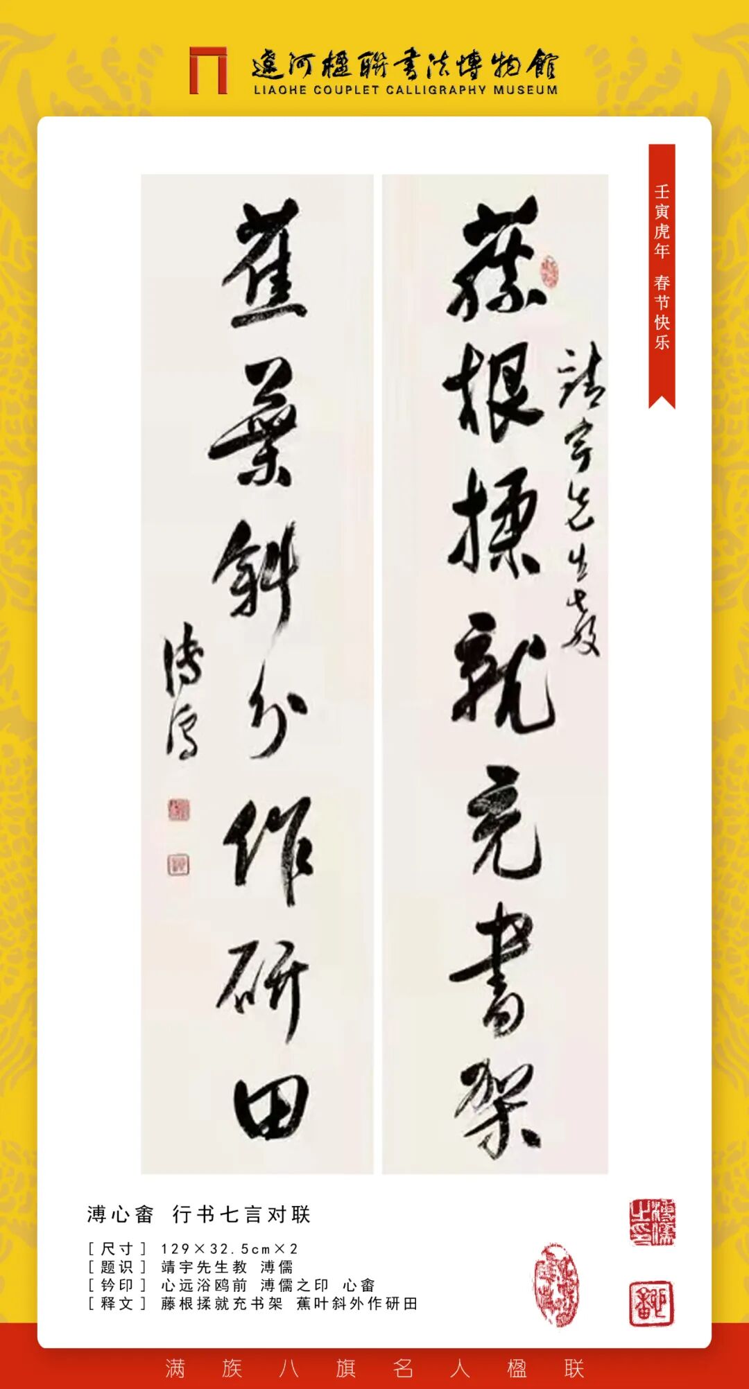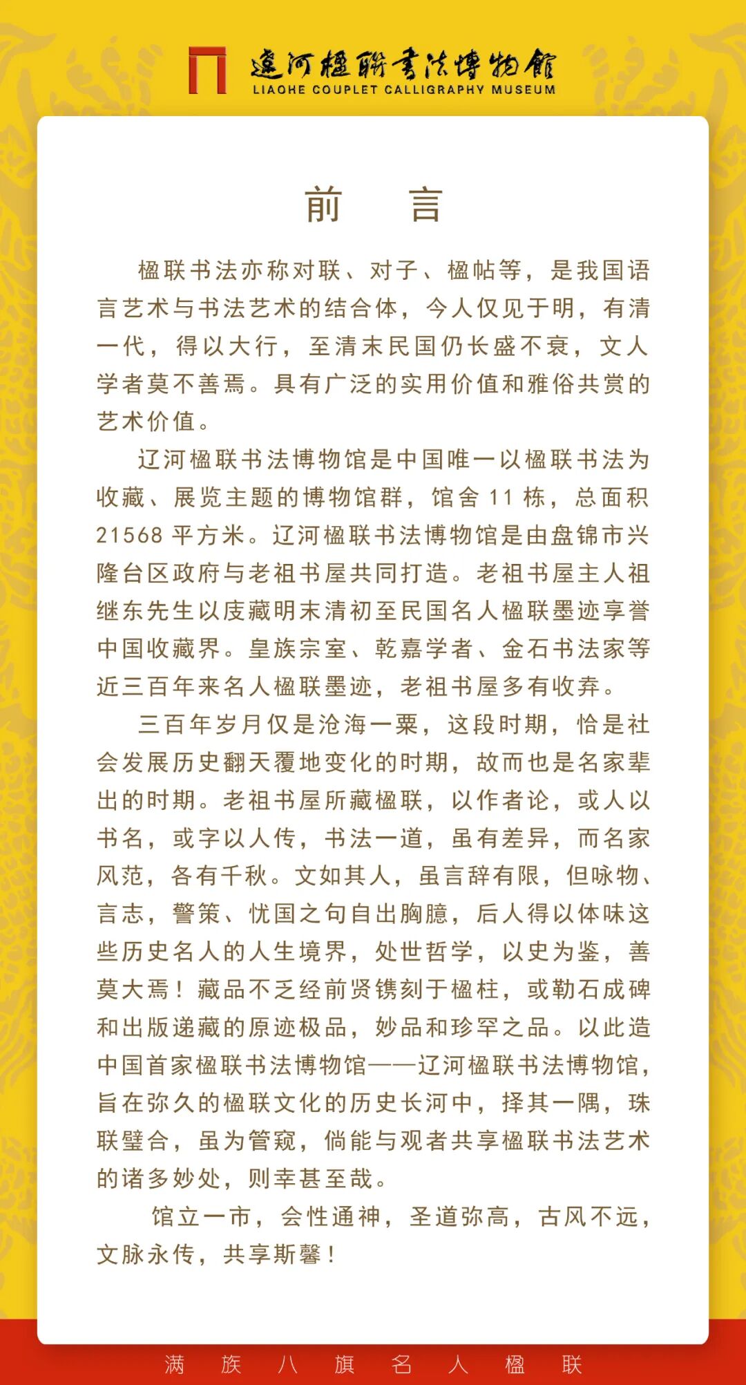 版权声明:本文所涉文字、图片、设计海报部分资料来自辽河楹联书法博物馆,版权归原作者所有,由联拍在线编辑整理。如涉及版权问题,请联系我们:400 608 1178。