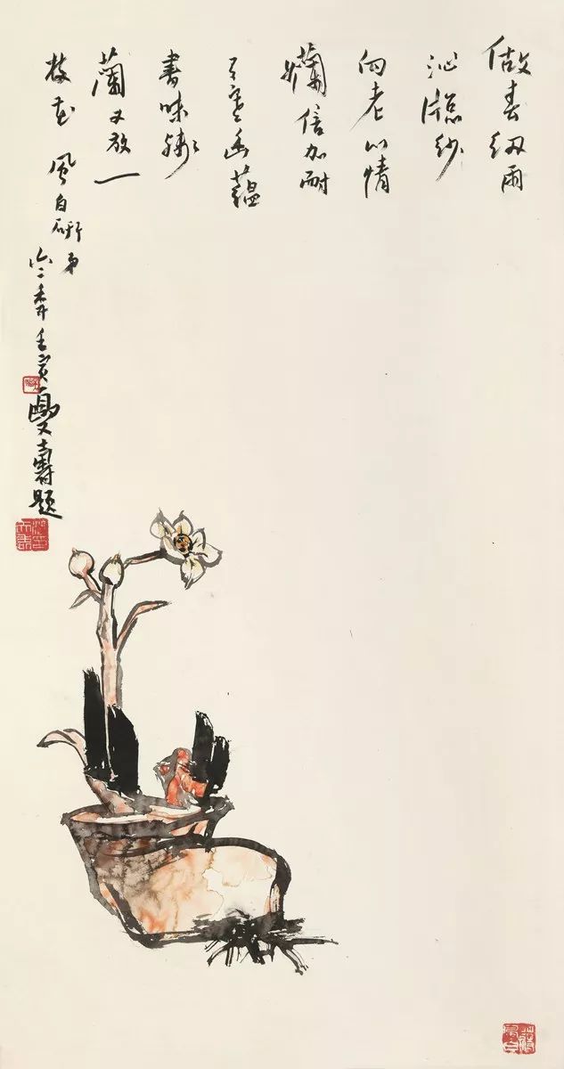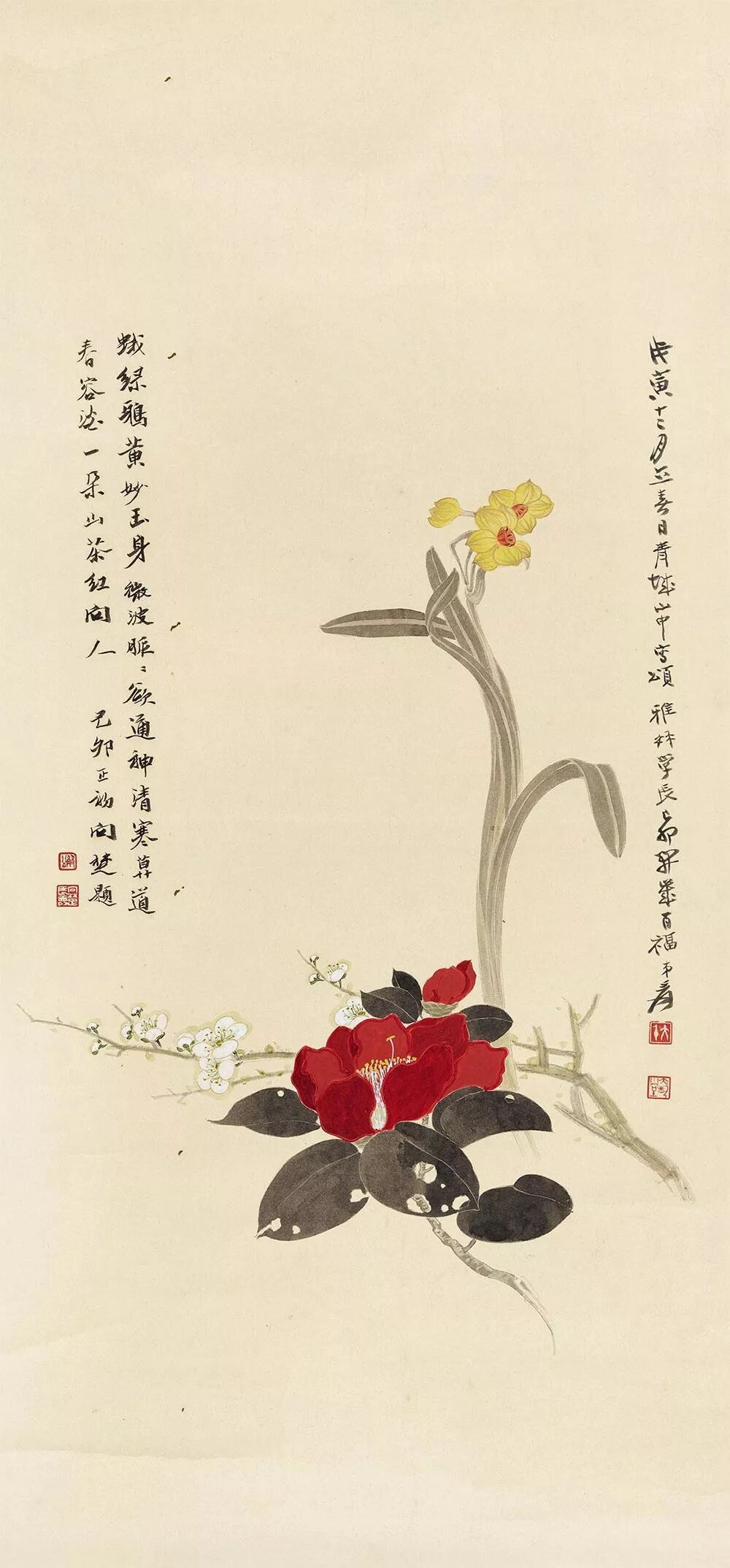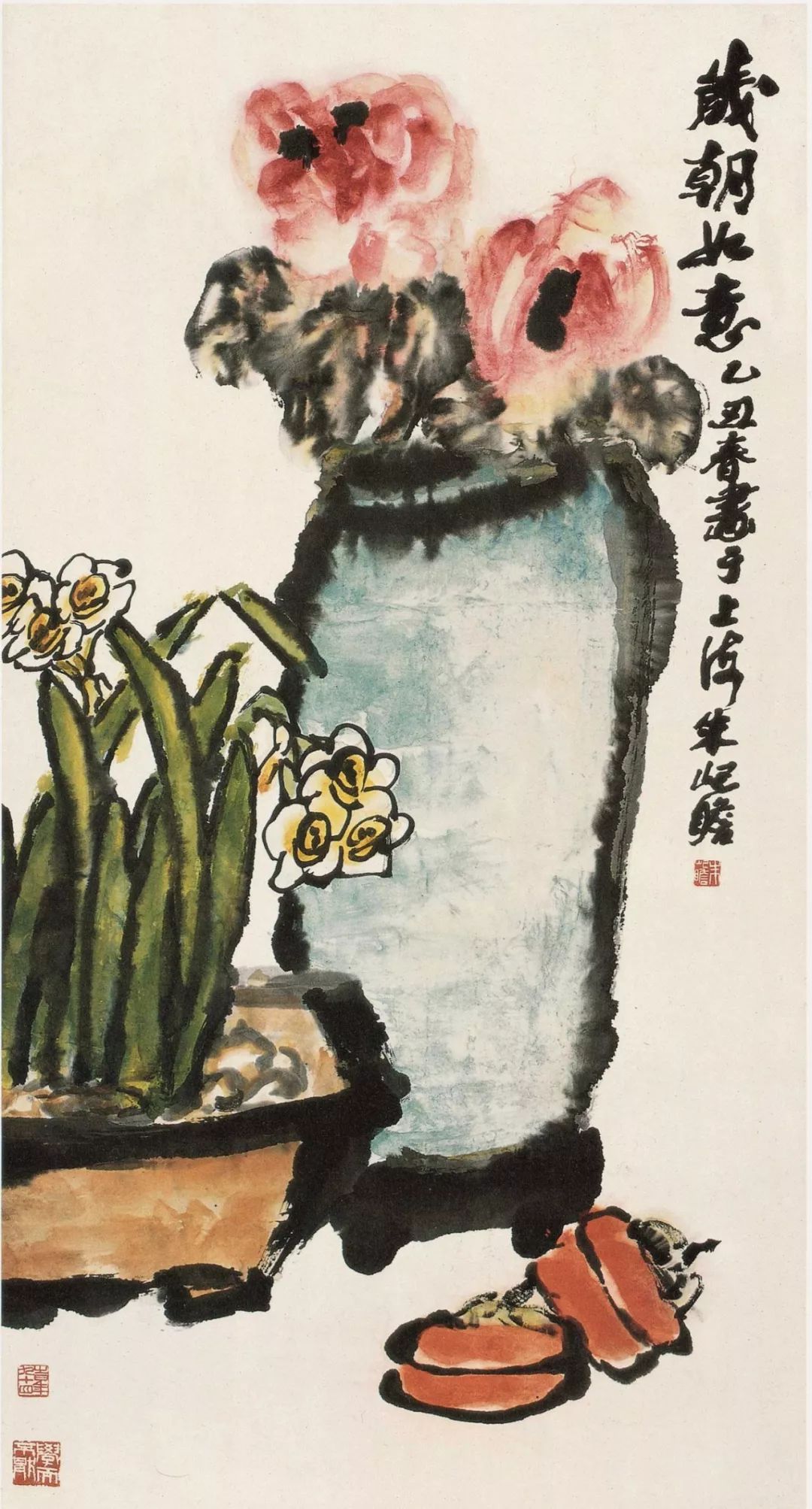 “岁朝清供”是中国画家爱画的画题。明清以后画这个题目的尤其多。任伯年就画过不少幅。画里画的、实际生活里供的,无非是这几样:天竹果、腊梅花、水仙。有时为了填补空白,画里加两个香橼。“橼”谐音圆,取其吉利。水仙、腊梅、天竹,是取其颜色鲜丽。隆冬风厉,百卉凋残,晴窗坐对,眼目增明,是岁朝乐事。