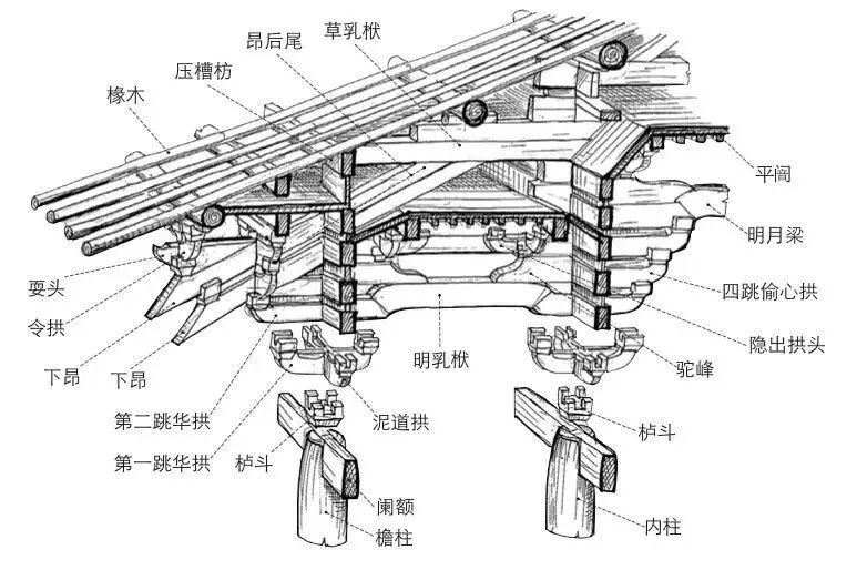 从底层台基到高处屋顶,这些精于心走于形的复杂结构,皆被李乾朗详尽描绘。说到中国古建筑,拱托着斗,斗托着拱,层层叠叠,起遮光挡雨作用的“斗拱”,是怎么也绕不过的美学构件。种类之繁多、构造之美,连建筑女神林徽因都赞叹“增一分太长,减一分太短”。