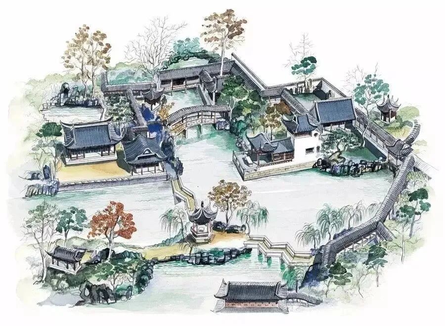 这种讲求与自然和谐相处,融为一体的取材、布局,与道家“人法地,地法天,天法道,道法自然”的理念,不谋而合。
