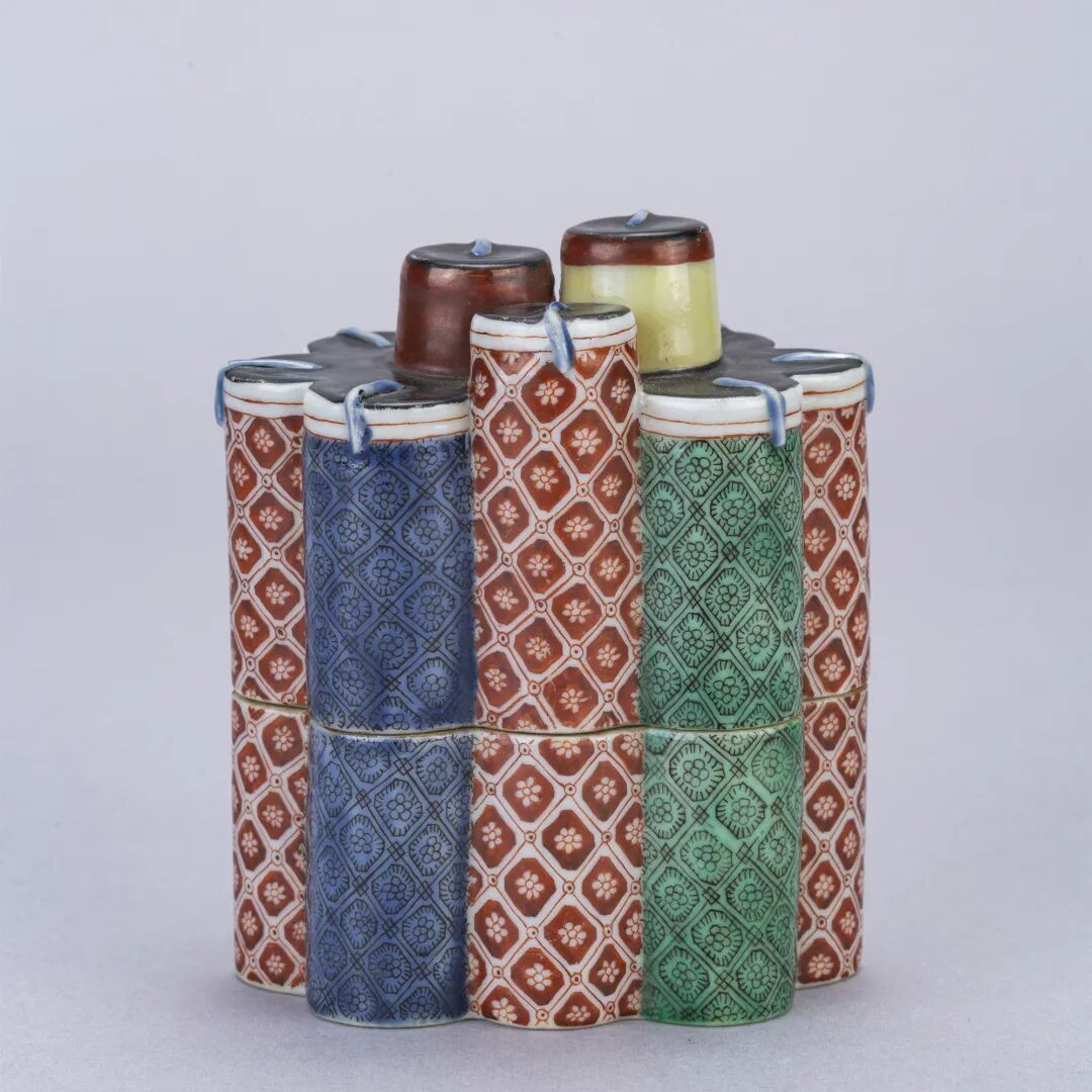 ▲清代 五彩爆竹形盖盒
