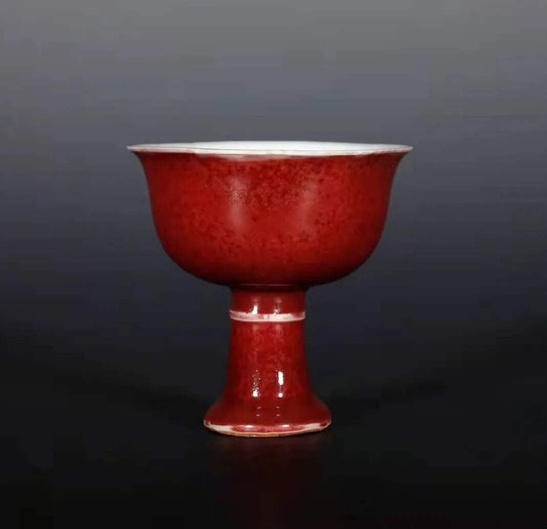 ▲明永乐 红釉高足杯