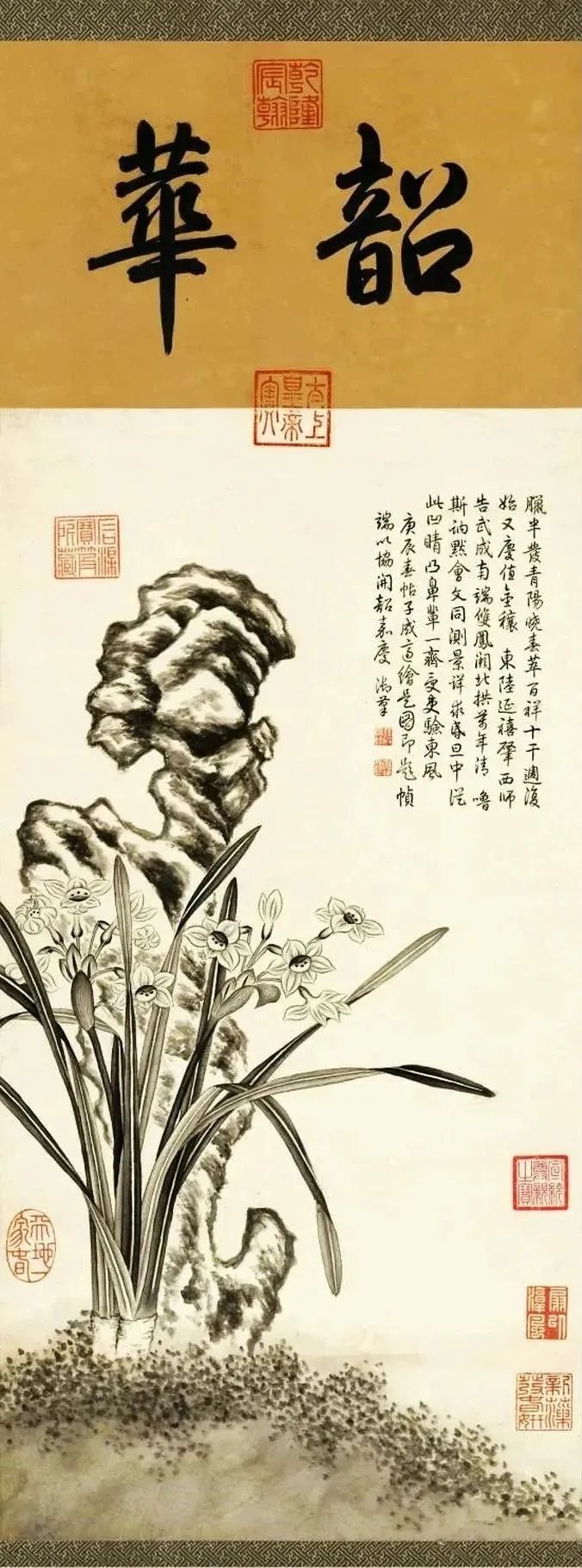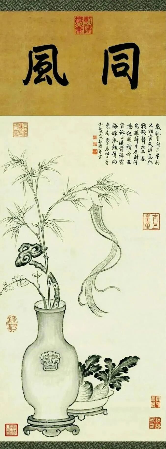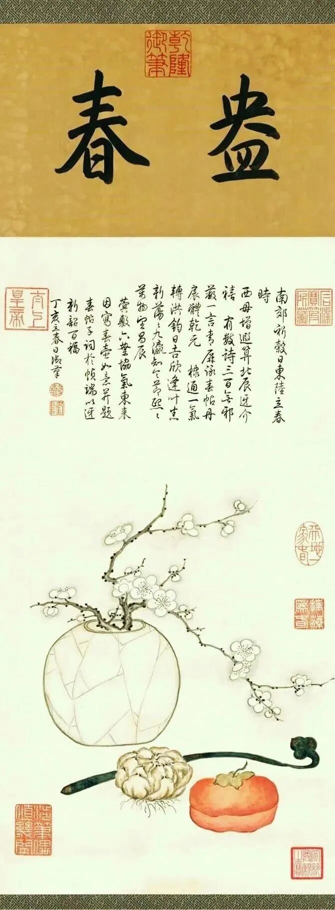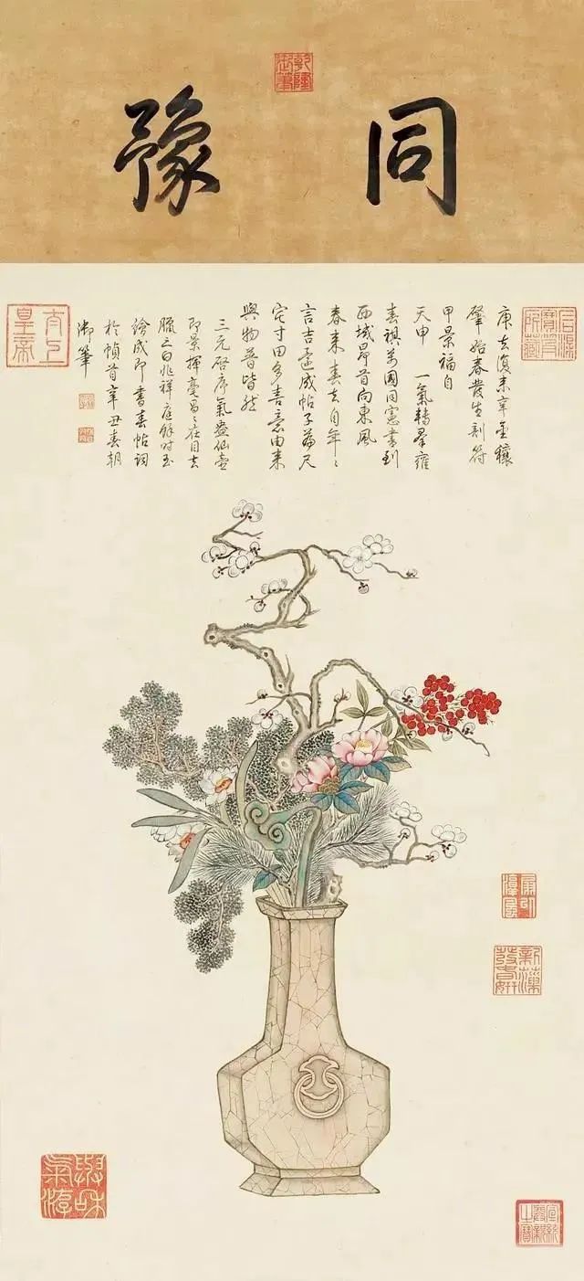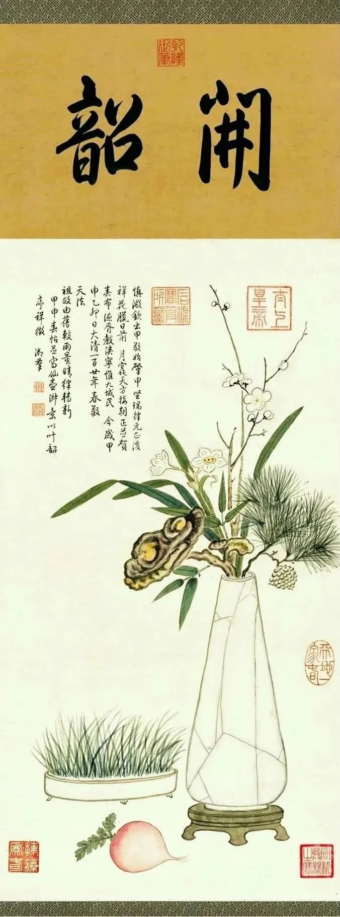 这幅乾隆的御笔《岁朝图》绘制,诗塘上题“韶华”二字。