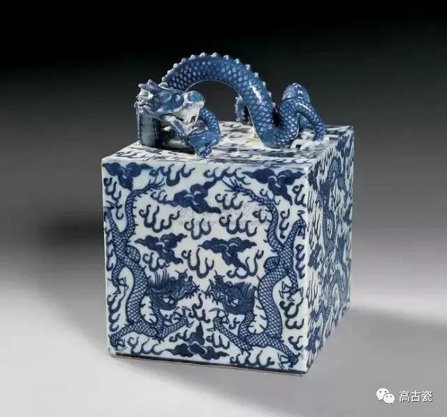 青花龙纹方形镇纸