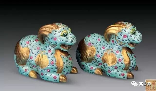 松石绿釉粉彩描金羊形镇纸 (一对)