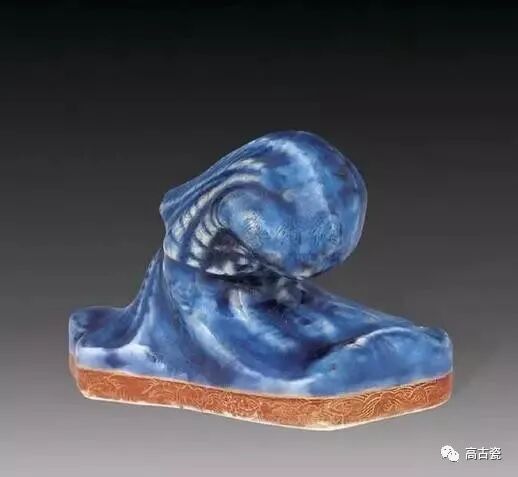 青花红彩描金海兽镇纸